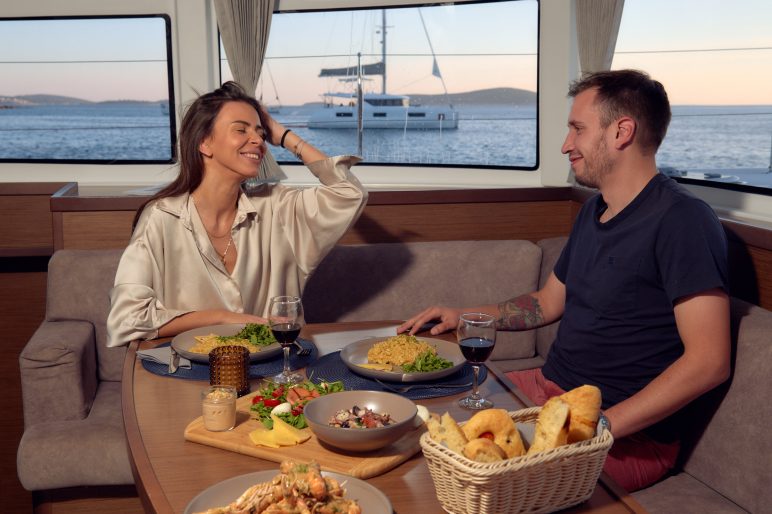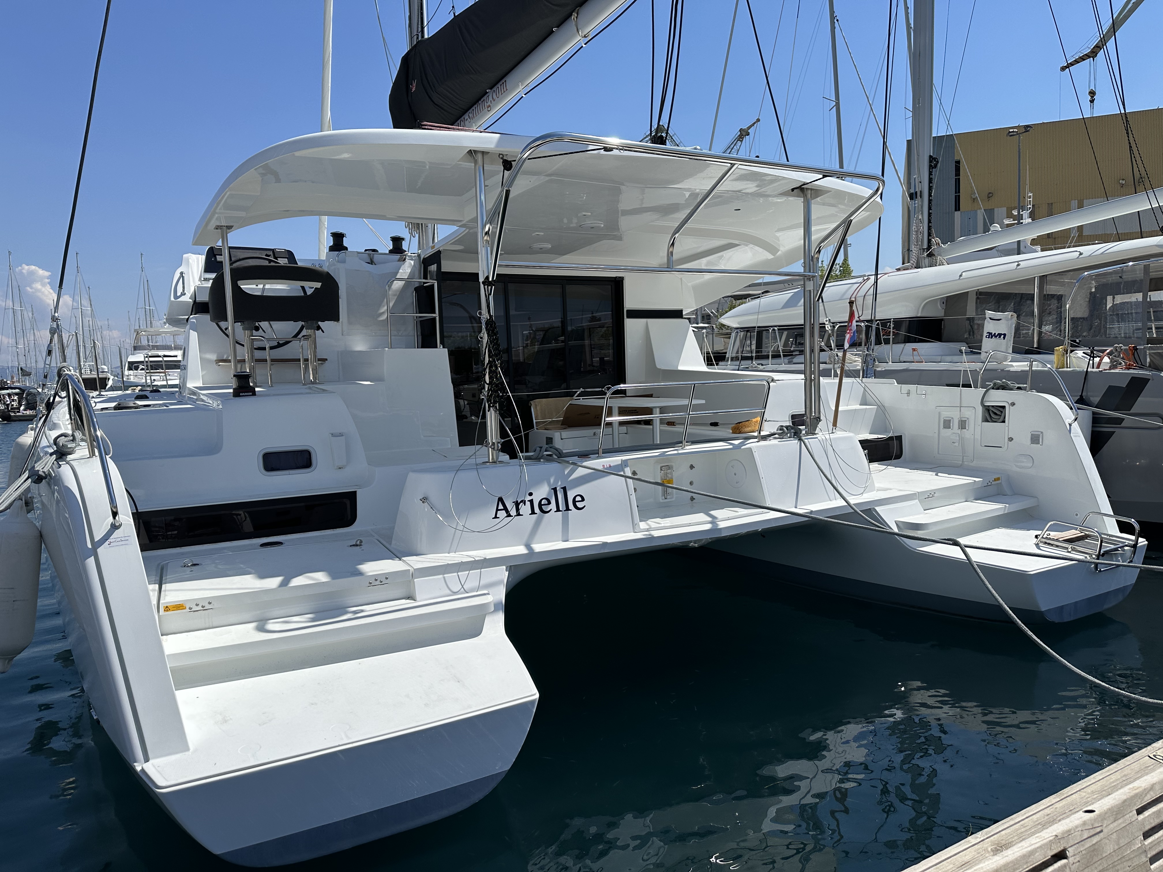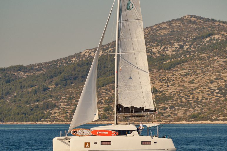 “Arielle” has an on-board WI-FI, sound entertainment system and air-conditioning both in salons and all guest cabins. In addition to Kayak, SUP, and four sets of snorkeling equipment, water sports gear includes a 3,5 m tender with an outboard engine of 20 HP. Families will love “Arielle” for its multiple living areas. Cruising under sail has its own special allure and guests can be assured of a superb charter experience. This catamaran is available both as a bareboat and crewed charter. We can’t wait to try her under sails … and you? Hurry up with your bookings and experience nothing but the best for your luxury charter!