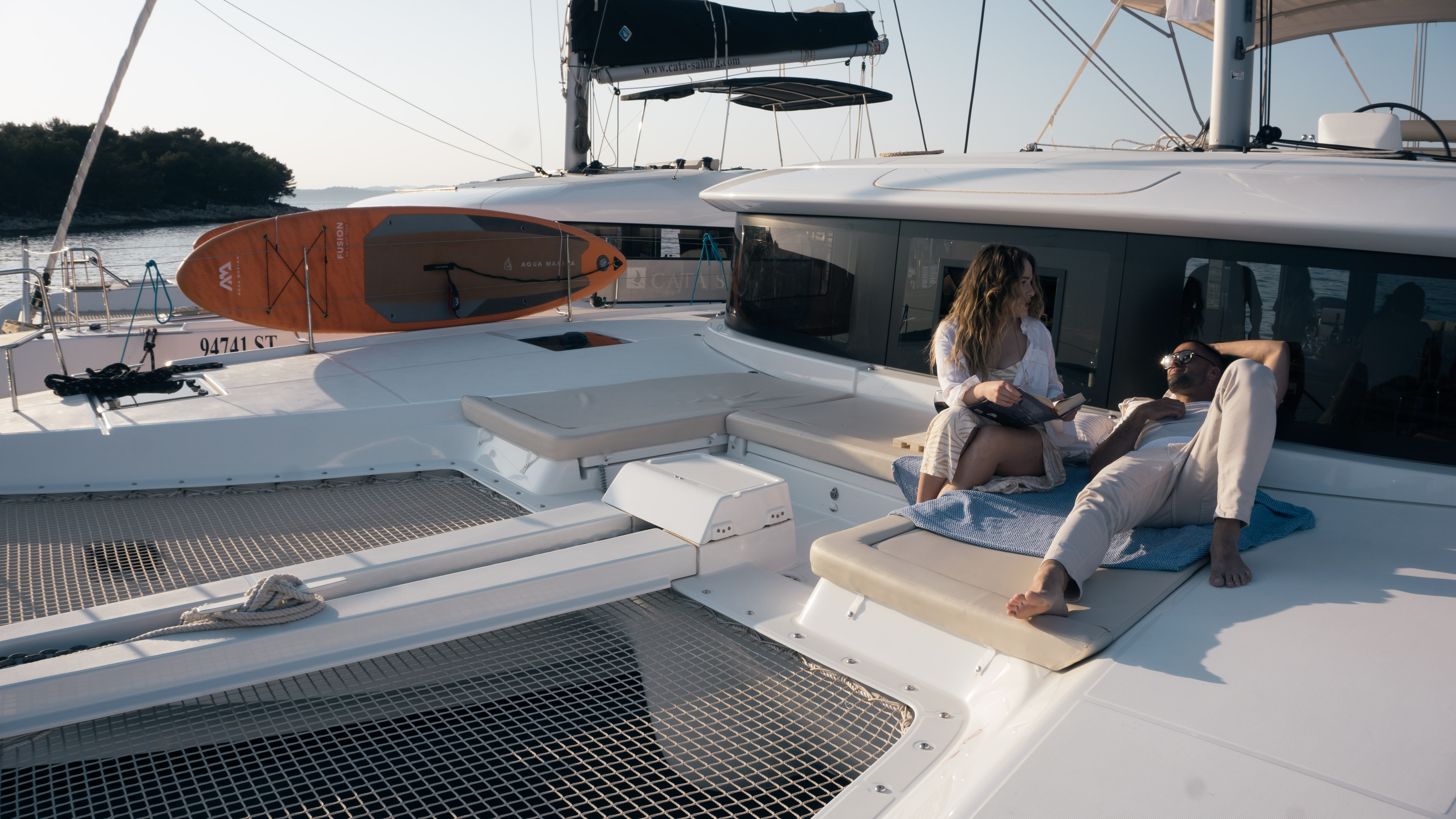 Spacious outdoor lounging areas with comfortable cockpit seating and forward deck relaxation space provide the perfect setting for sunbathing and enjoying the sea.