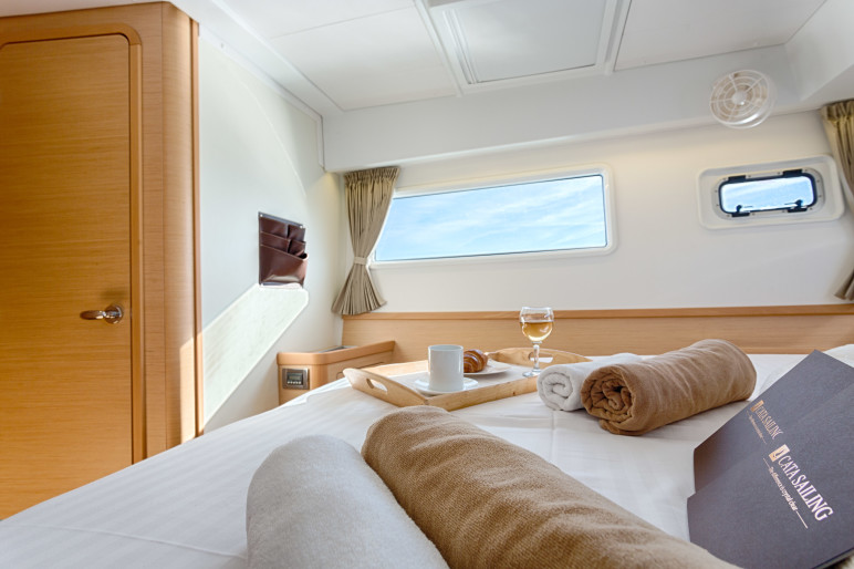 “Bright Sky” has an on-board WI-FI, sound entertainment system and air-conditioning. In addition to Kayak and SUP water sports gear includes a 3,5 m tender, outboard engine 20 HP. Families will love “Bright Sky” for its multiple living areas. Needless to say, all of the components inside measure with the greatest charter standards. Cruising under sail has its own special allure and guests can be assured of a superb charter experience. This catamaran is available both as a bareboat and crewed charter. Book your sailing holiday now and experience nothing but the best for your luxury charter!