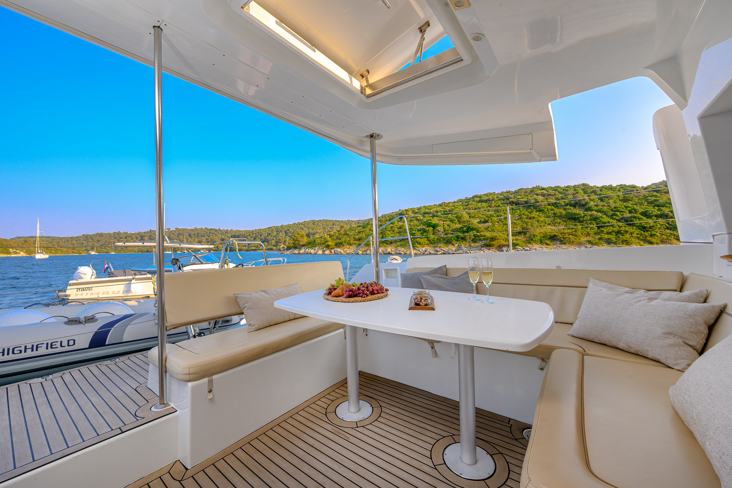 Imagine absolute freedom and a supreme luxury vacation experience, sailing the open sea with this amazing catamaran. “Blue Berry” comfortably accommodates 8 charter guests in 4 cabins with en suites. In the saloon, guests can enjoy a large-screen TV and WI-FI throughout. For on-water fun for all ages, she is equipped with a SUP, Kayak, Knee board, Donut and snorkelling equipment. In addition, Lagoon 450 F Luxury “Blue Berry”, is a spacious, modern and supremely comfortable catamaran. She is a fantastic choice for families or groups for your luxury charter vacation in Croatia. Above all, Croatia’s greatest appeal as a sailing destination lies in the diversity of its coast. Therefore it is a sailor’s paradise and vacationer’s dream. Book your sailing holiday now and enjoy the comfort of this luxury catamaran.