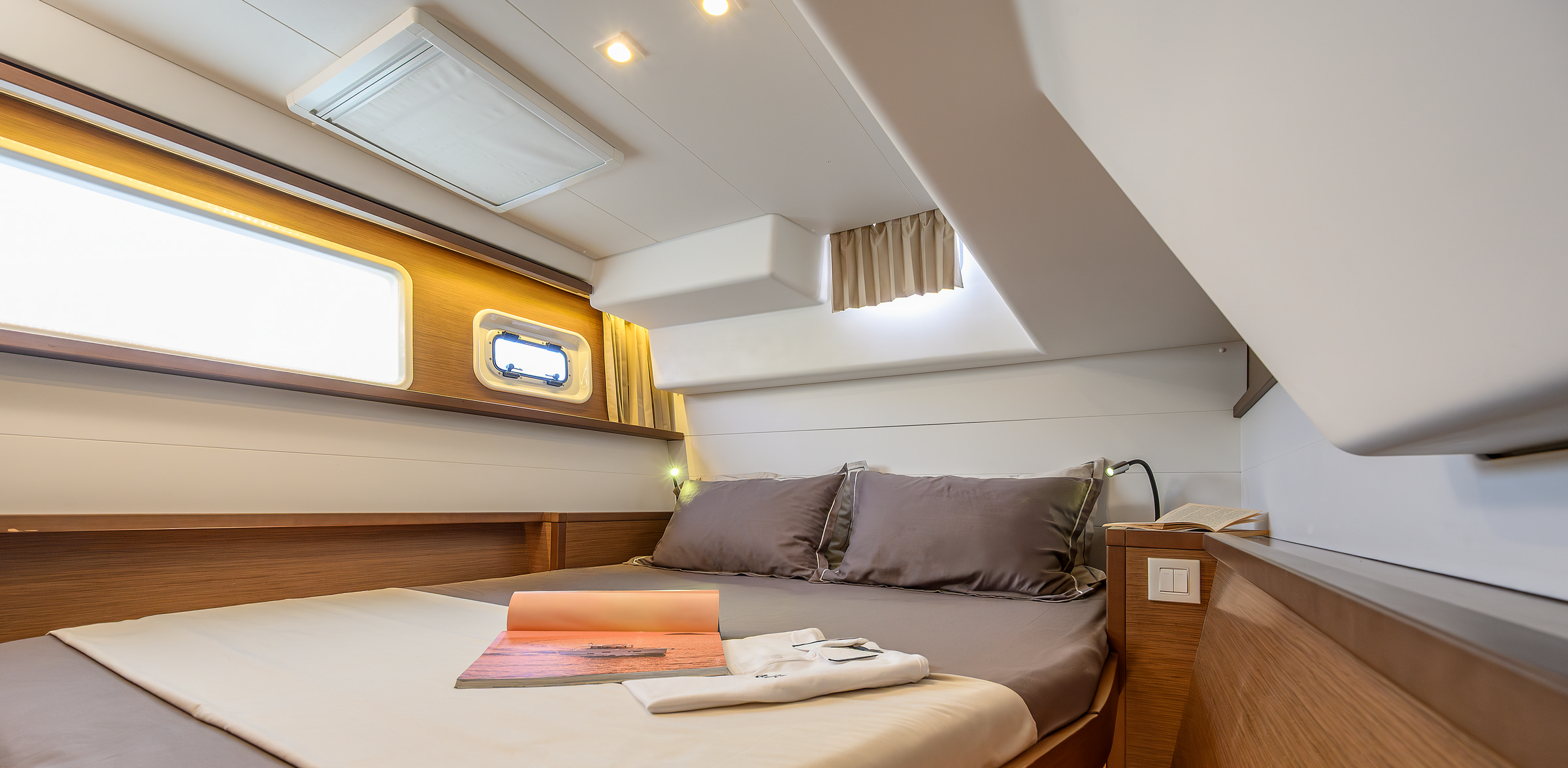 High-quality navigation systems, power generators, VHF and water makers ensure you have everything you need onboard.
