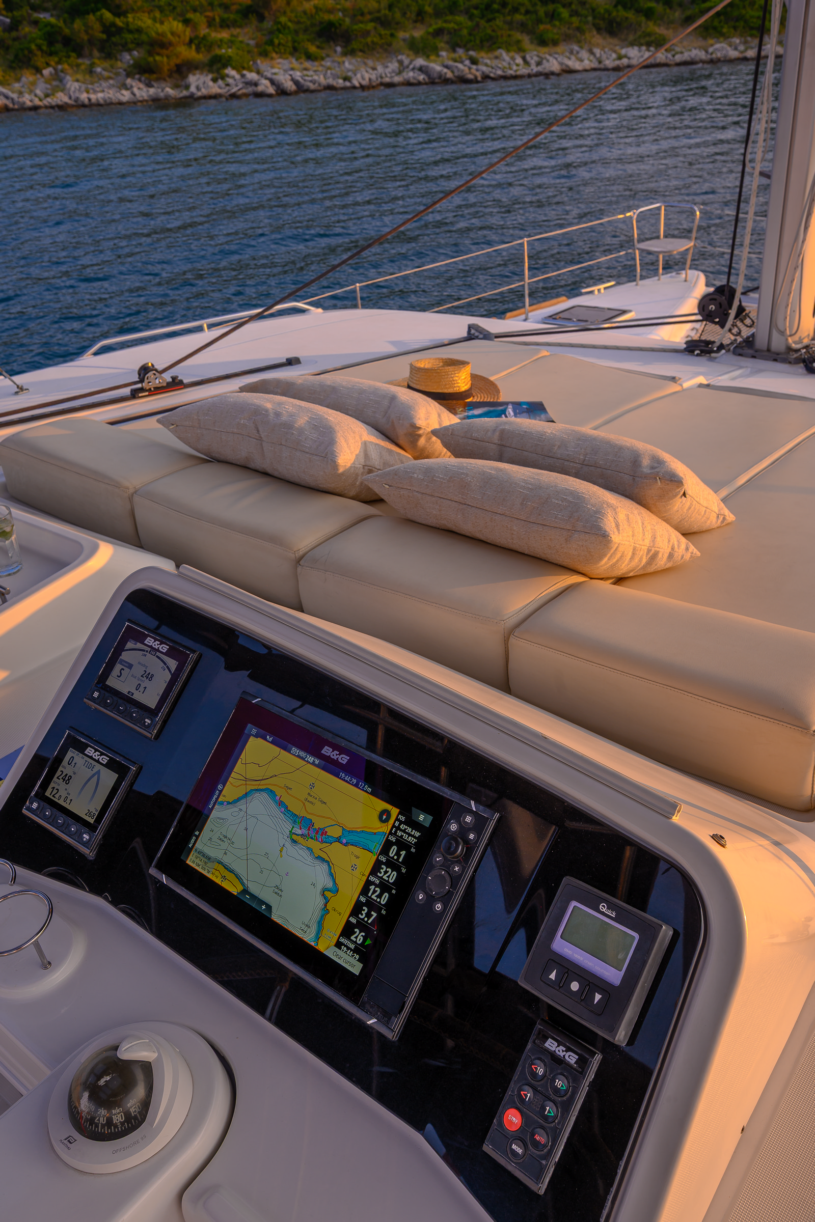 The yacht is equipped with reliable navigation and technical systems, including an autopilot, GPS chartplotter, VHF radio, generator, and watermaker, ensuring safe and comfortable cruising.