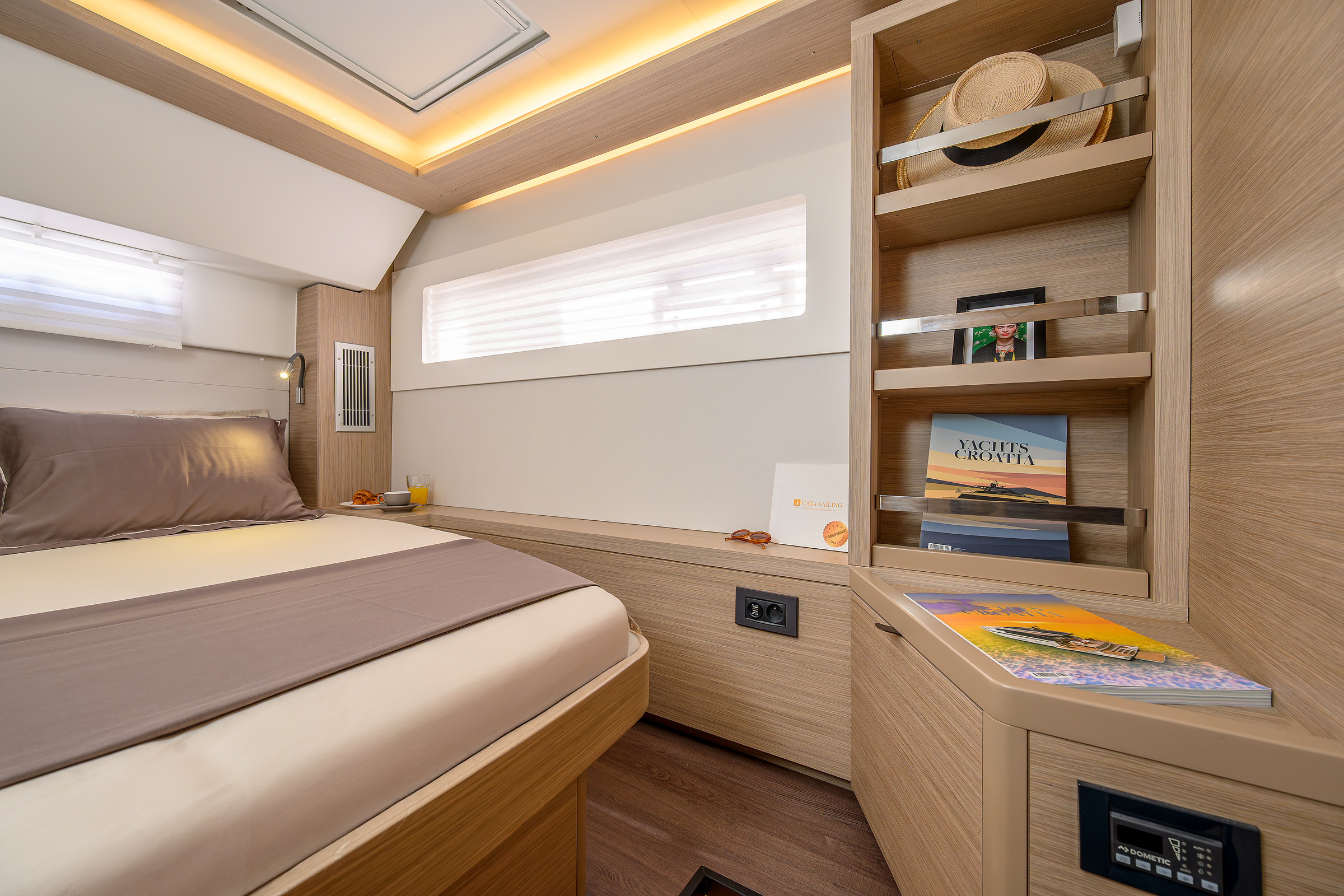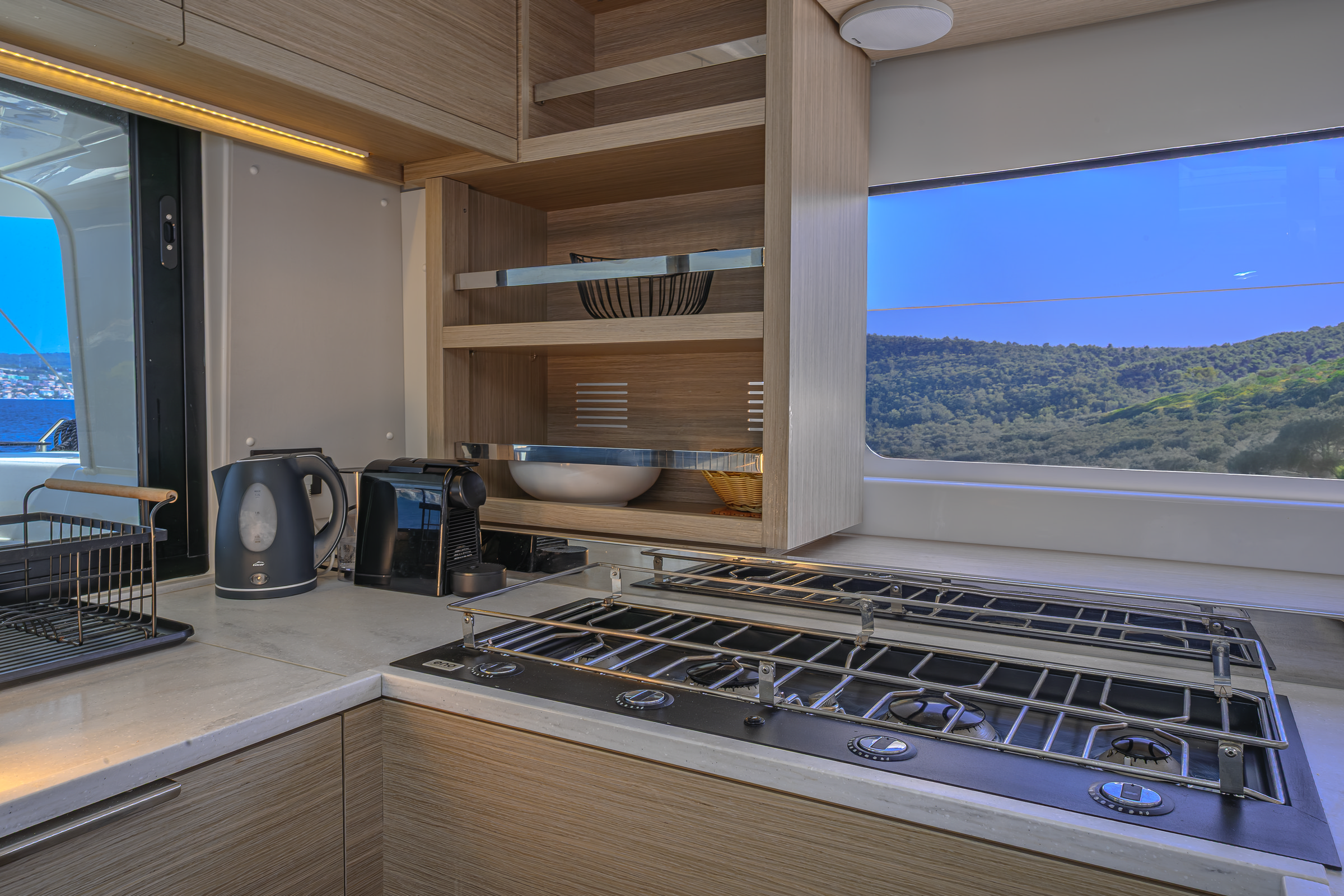 Enjoy ultimate comfort with our interior features; WI-FI, water maker, ice maker, Nespresso coffee machine, AC, LD TV.